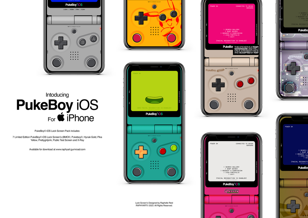 7 Limited Edition PukeBoy© iOS Lock Screen’s (BMO©, HUMANSWEARRAPH©, Hyrule Gold, Pika Yellow, Prettygirlpink, Public Test Screen and X-Ray